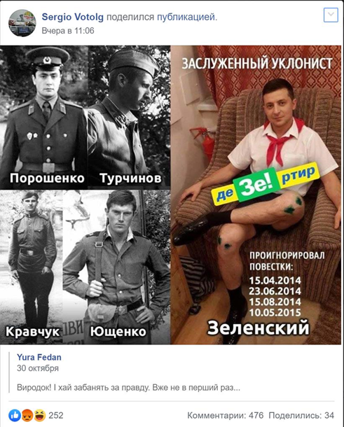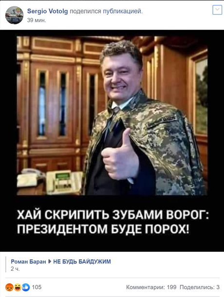 Так, в группе FB «НЕ БУДЬ БАЙДУЖИМ» один из сторонников бывшей власти, который активно постит троллинговые картинки по отношению к действующему Президенту и всячески восхваляет Порошенка, решил заняться оскорблением отца В.Зеленского - Александра Семеновича!